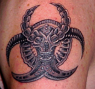 There's just something so fitting about meshing the work of H.R. Giger with the biohazard sign. This is, of course, only a Giger inspired thing (I don't think he does tattoos...yet), but I think it pulls it off pretty well.