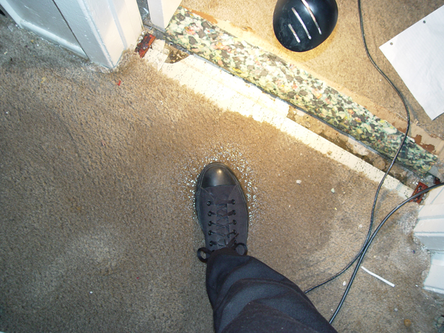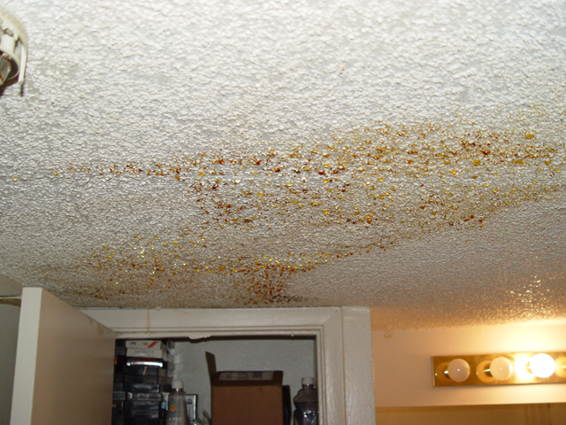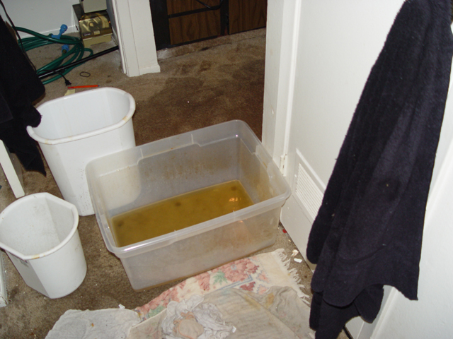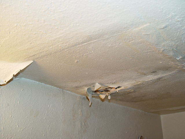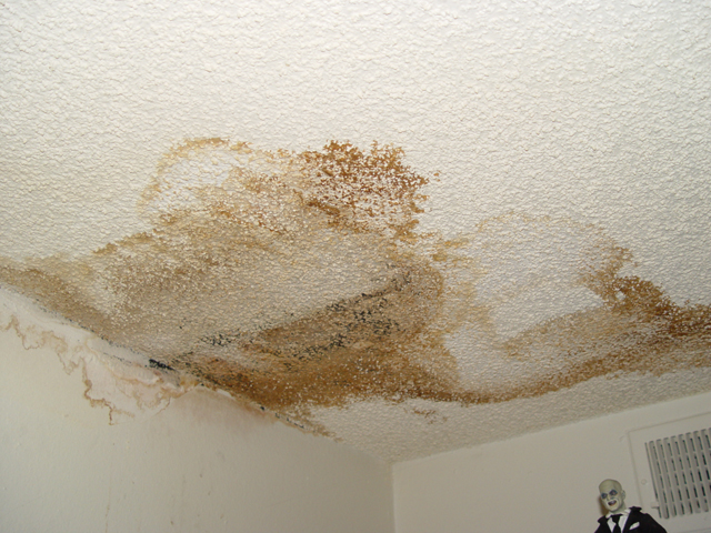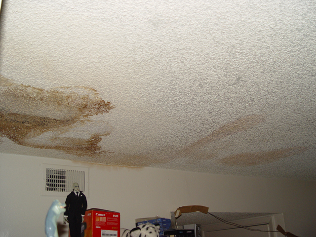 A different source, a few feet away. This one's not raining at the moment; when it does, it comes through faster. On the bright side, if there is one, the floor beneath this source is tiled, not carpeted.