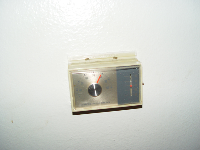 The thermostat on the other side of the damned house. It's eighty degrees in here, even though there's ice upstairs.